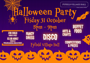 Get ready for a spooktacular evening at Fyfield Village Hall’s Halloween Party!